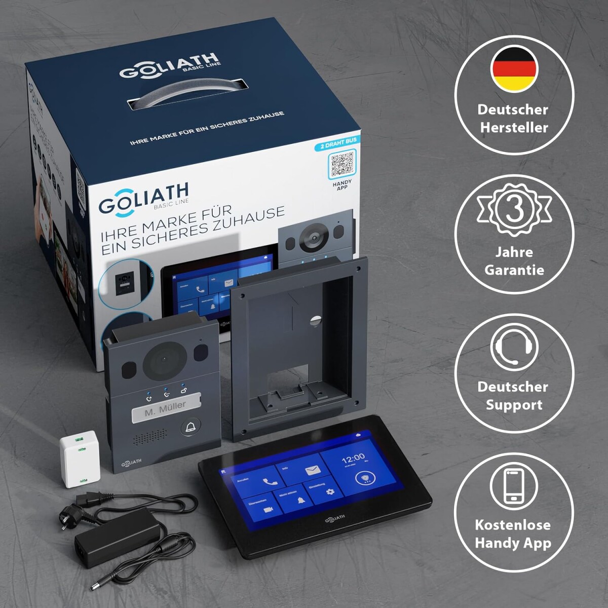 GOLIATH Basic 2-Draht BUS Türsprechanlage | FullHD | App | 150° | 1 Fam | Anthrazit/Schwarz | Unterputz
