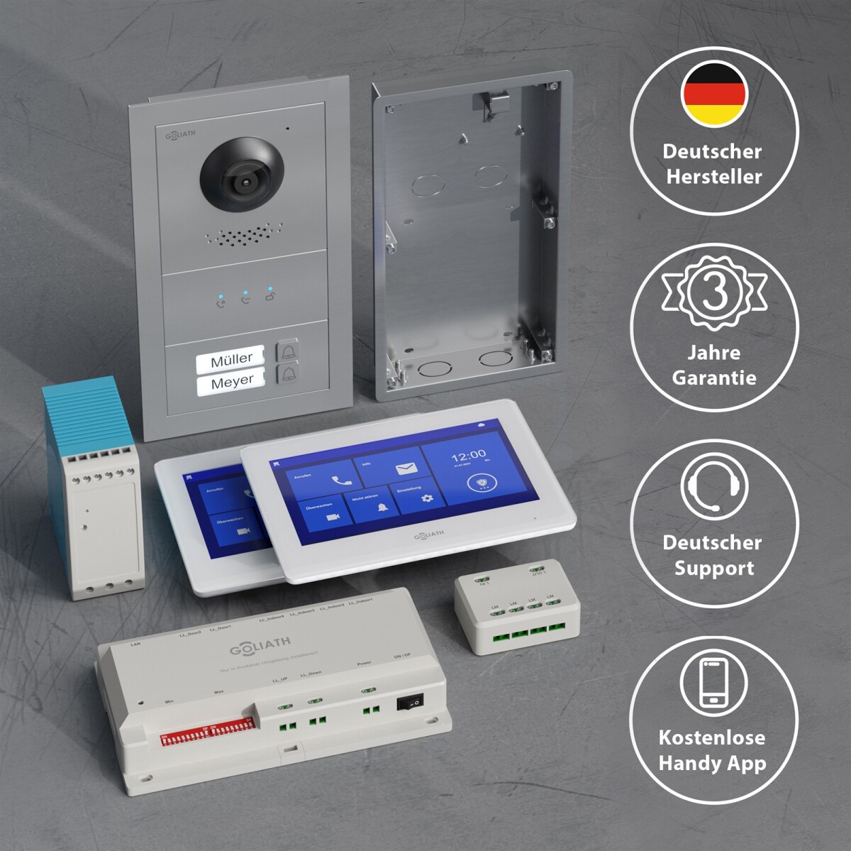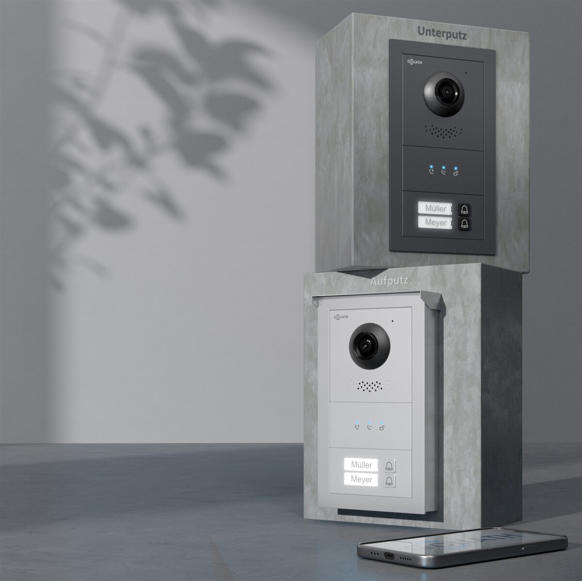 GOLIATH Basic 2-Draht BUS Türsprechanlage | FullHD | App | 150° | 2 Fam | Silber/Weiß | Unterputz