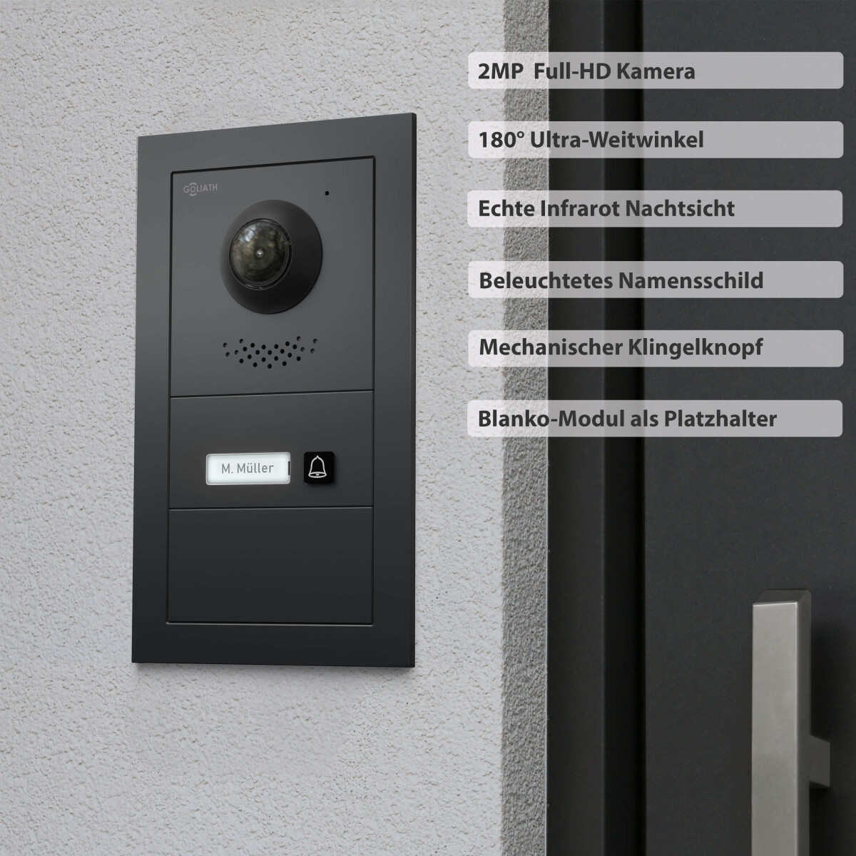 GOLIATH Hybrid IP Video Sprechanlage mit Anthrazit | 1-Fam | 10″ HD | Unterputz Set | 180° Kamera