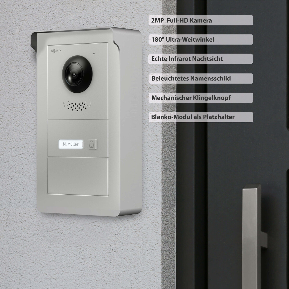 GOLIATH Hybrid IP Video Türsprechanlage mit App | 1-Familie | 10 Zoll HD | Aufputz | 180° Kamera