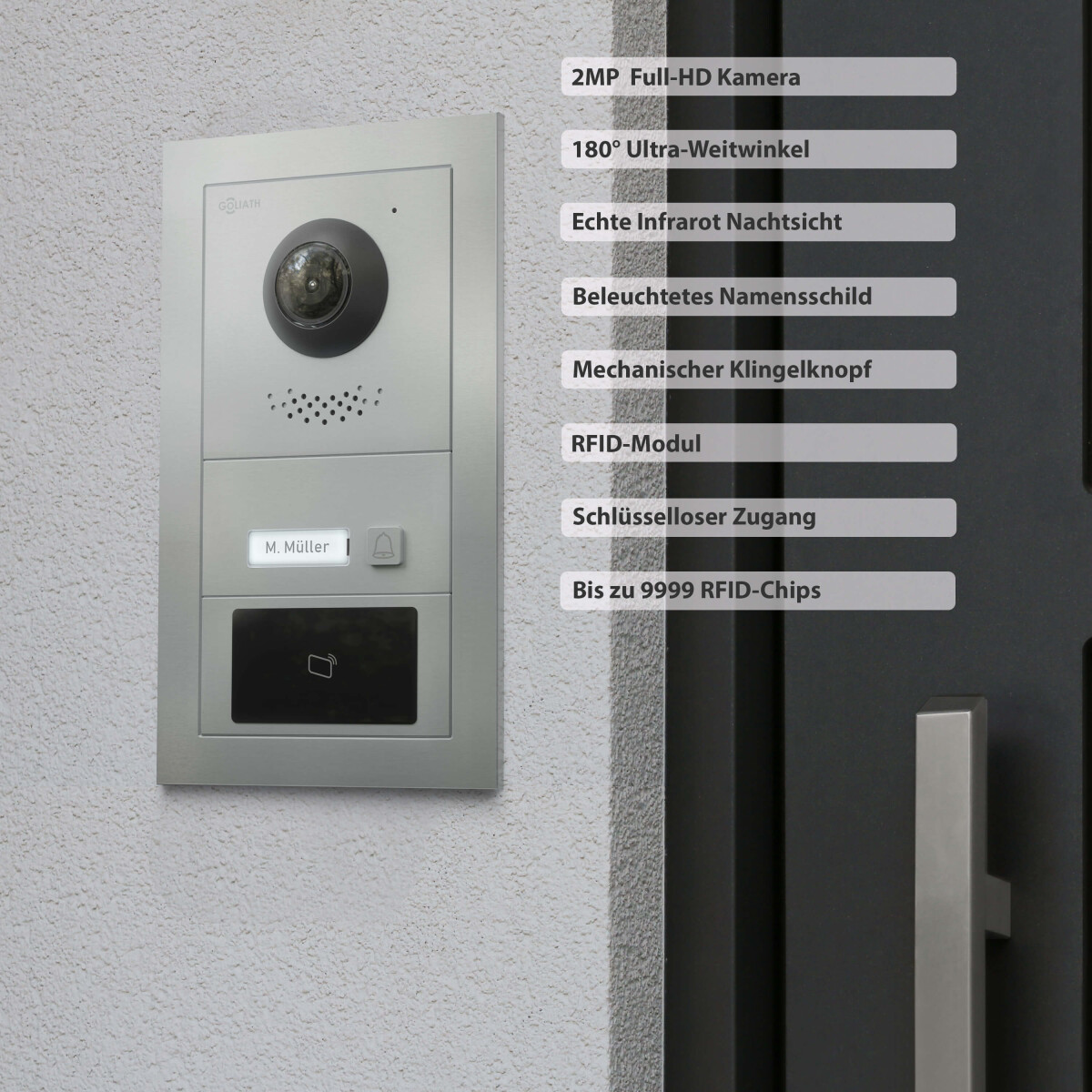 GOLIATH PRO 2-Draht BUS Türsprechanlage | App | 1 Familie | 7 Zoll Weiß | RFID | 180°