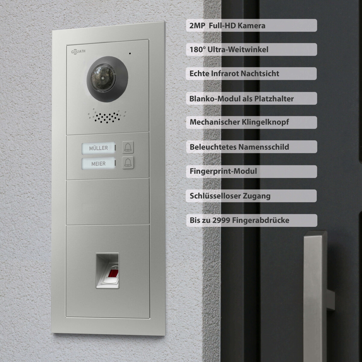 GOLIATH PRO 2-Draht BUS Türsprechanlage | App | 2 Fam | 2×7 Zoll Weiß | Fingerprint | 180°