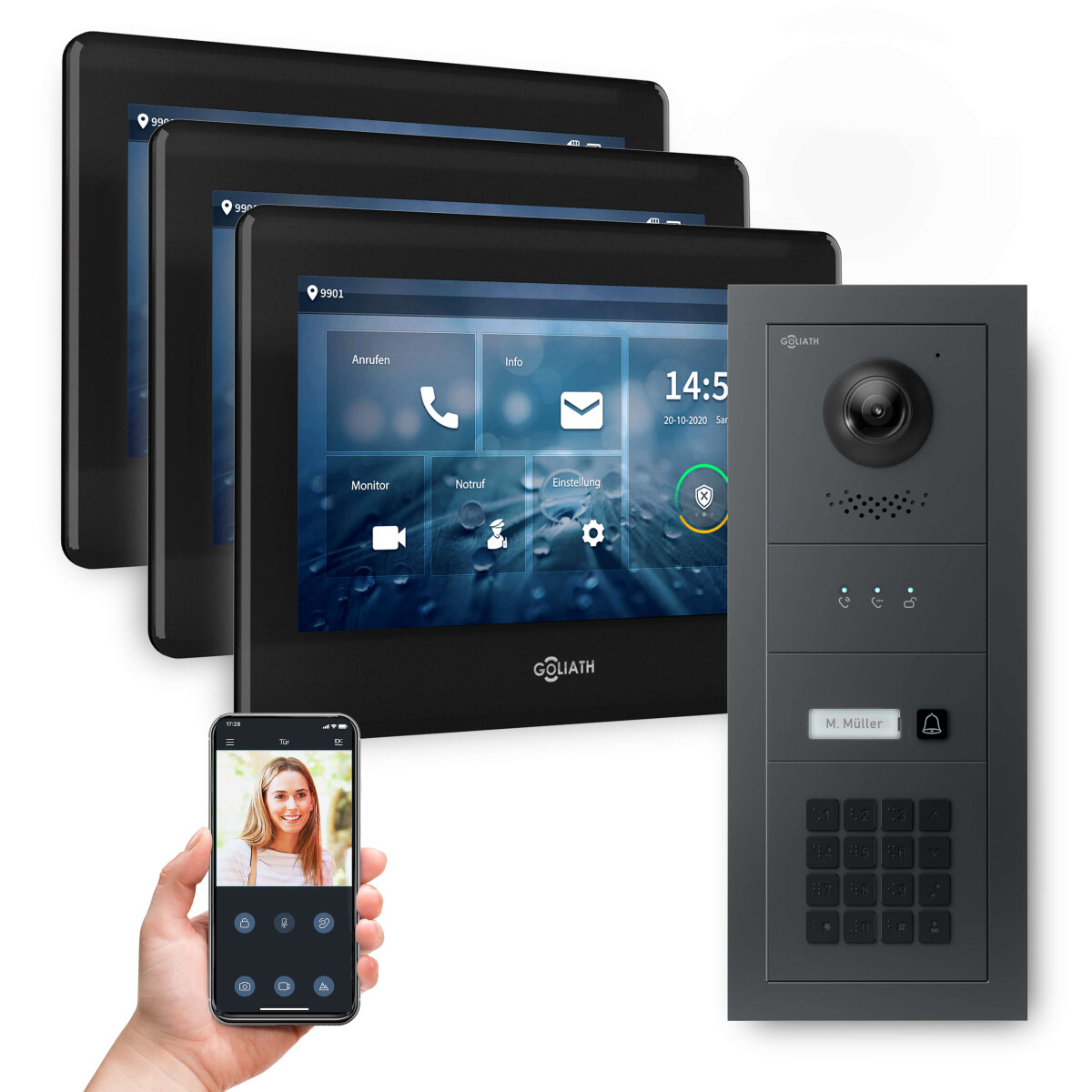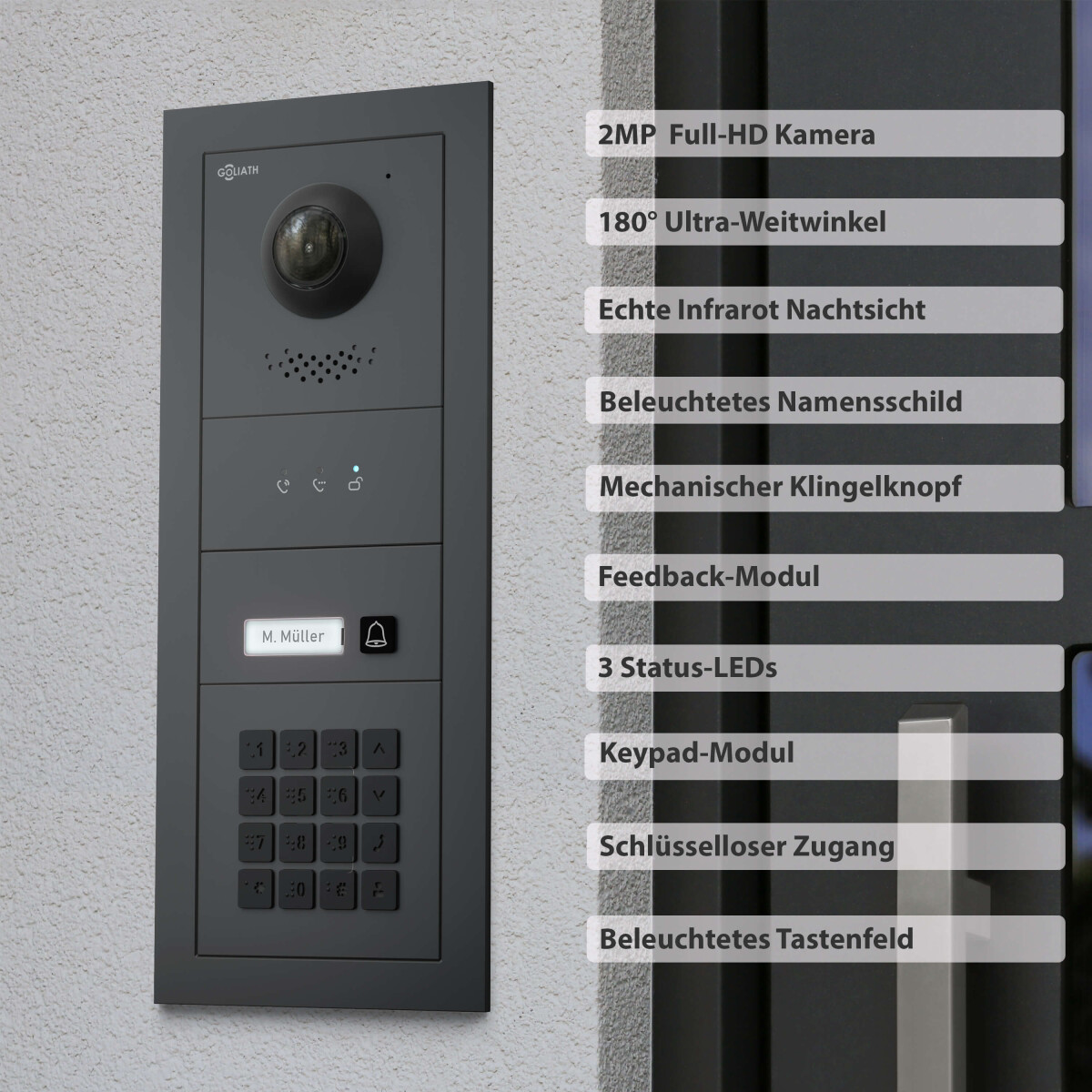 GOLIATH PRO 2-Draht BUS Video-Türsprechanlage | Anthrazit | 1 Fam. | 3×7″ Schwarz | Keypad | 180°