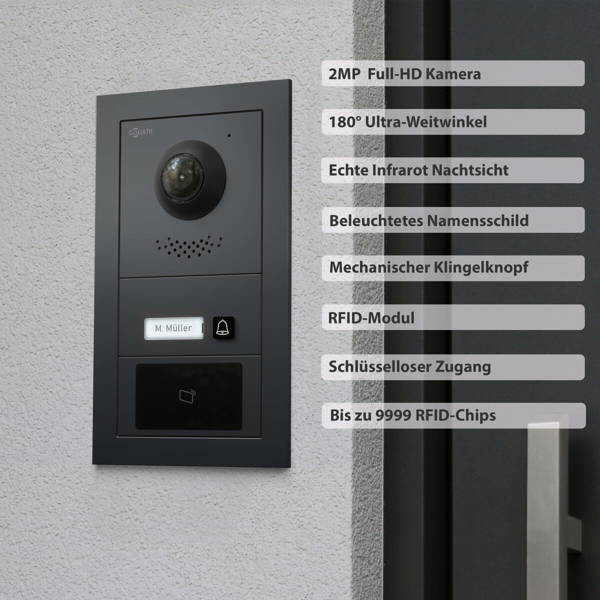GOLIATH PRO 2-Draht BUS Video Türsprechanlage | Anthrazit | 1 Fam | 3×7 Zoll Weiß | RFID | 180°