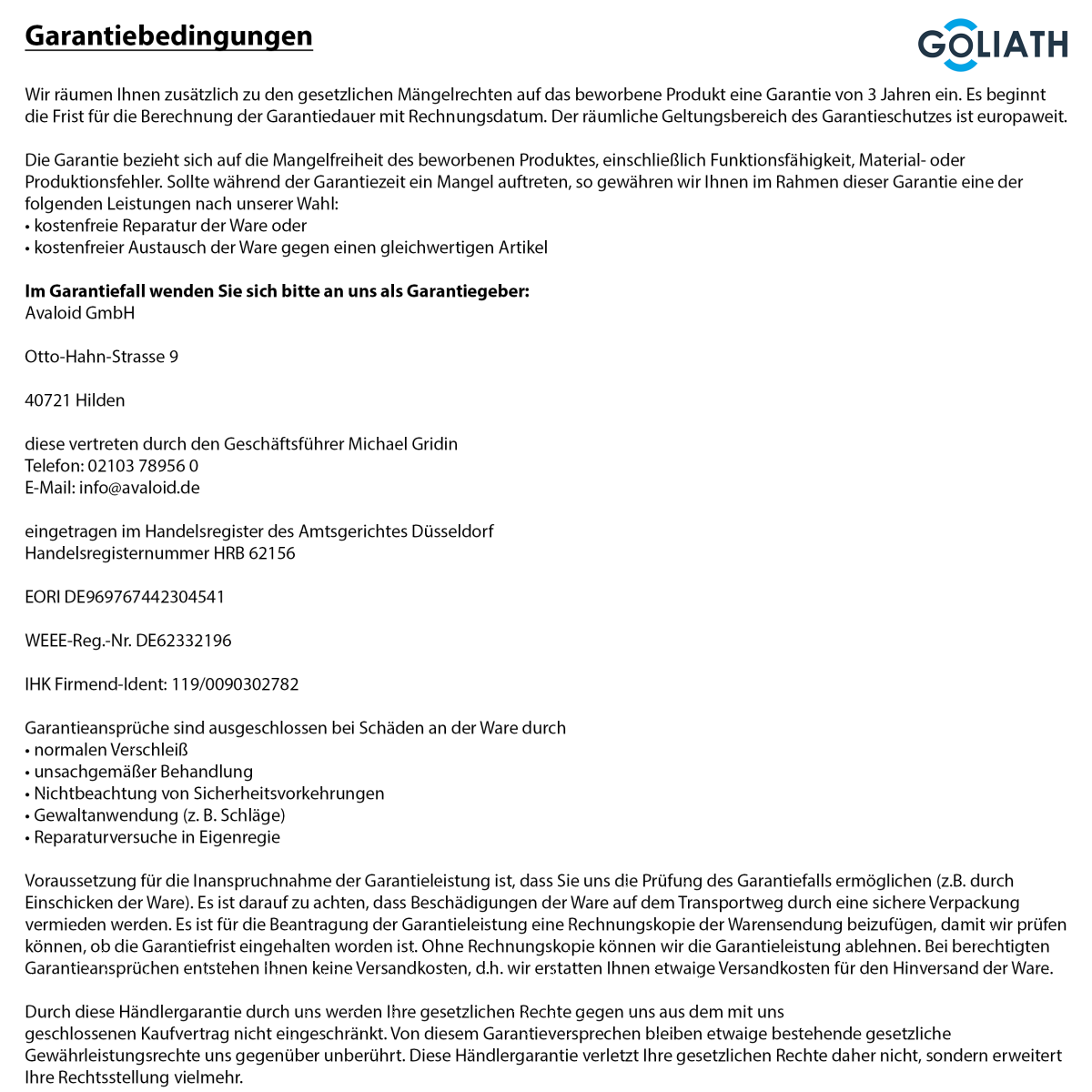 • 3 Jahre Garantie