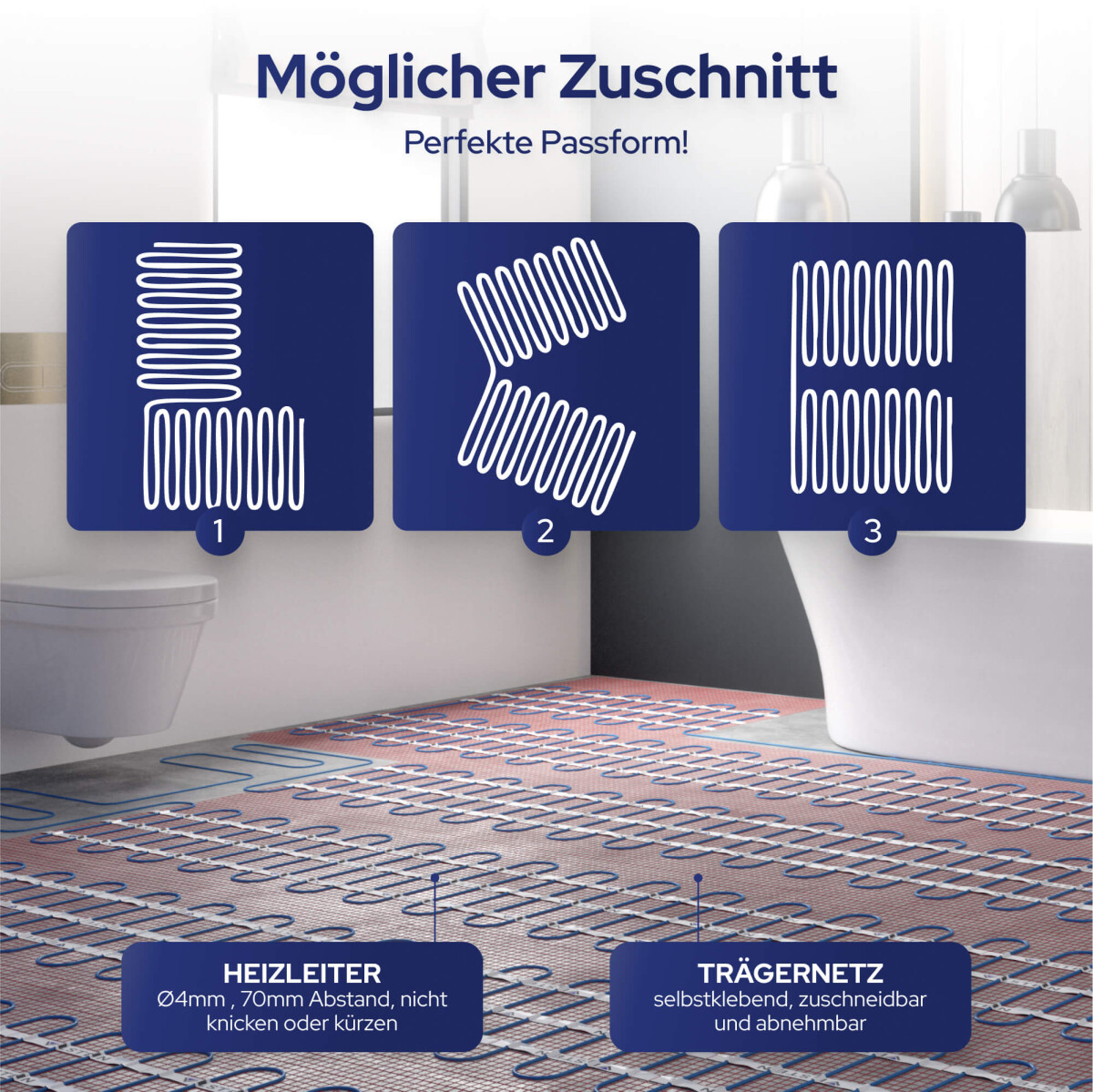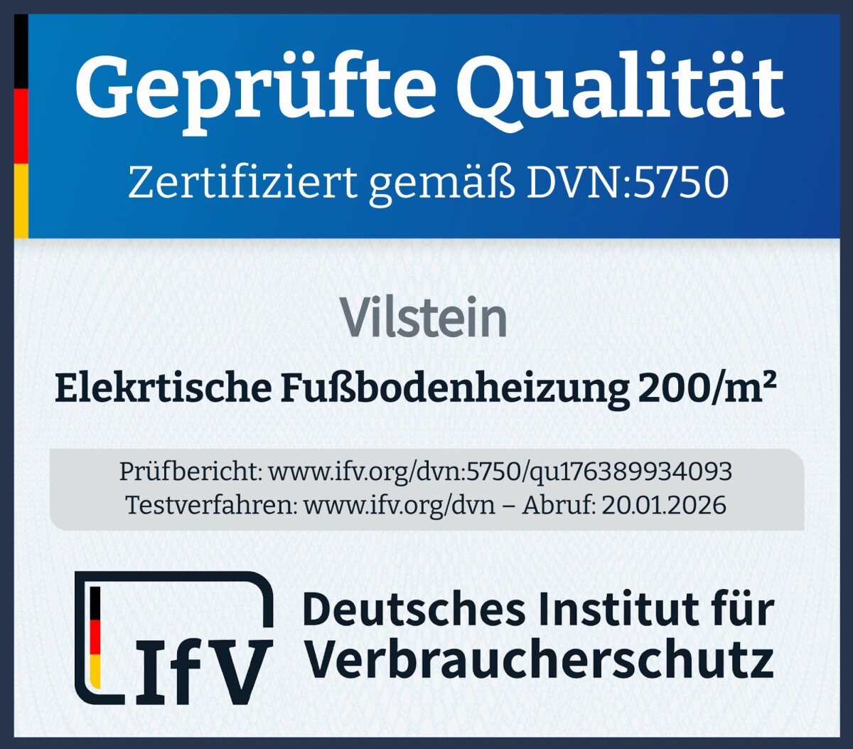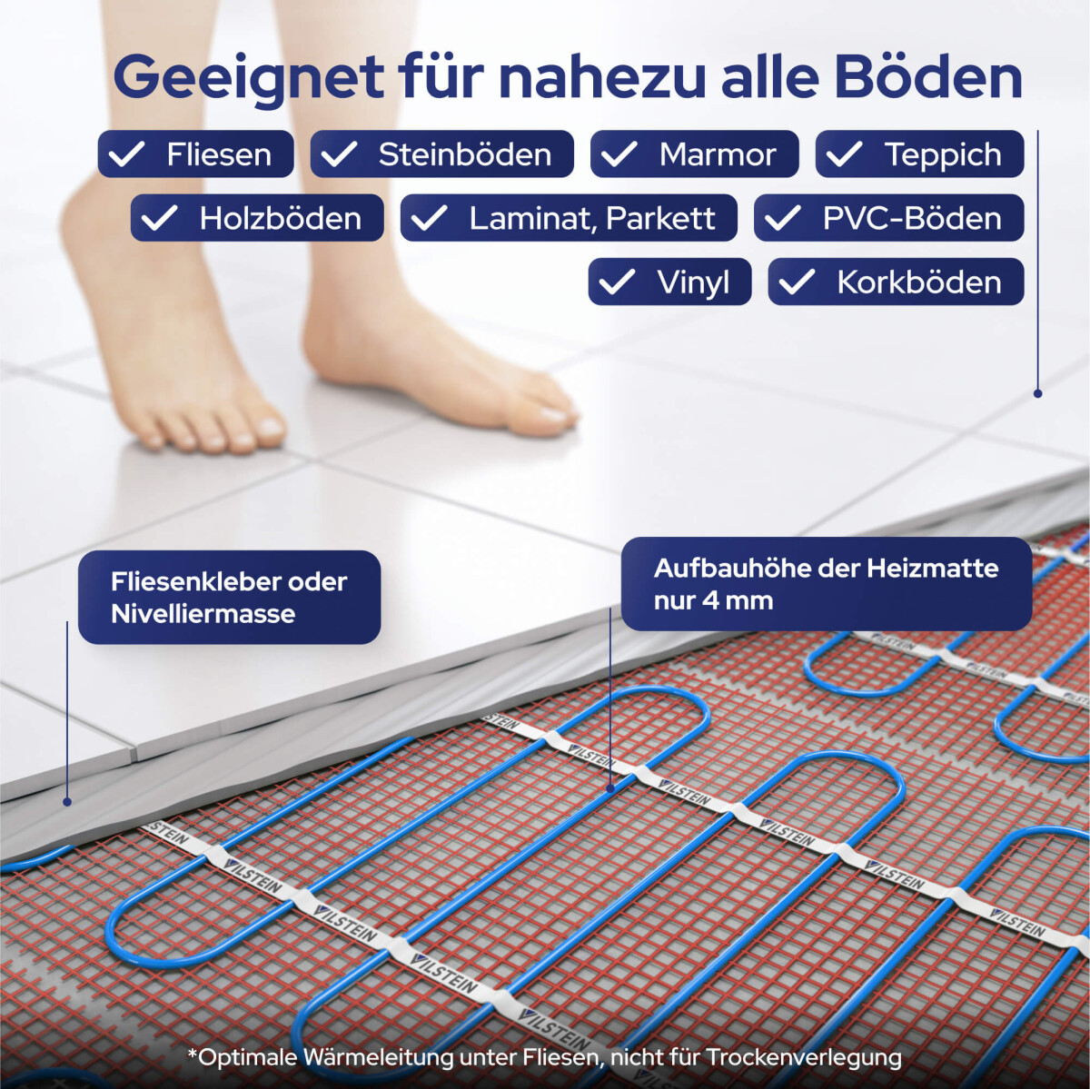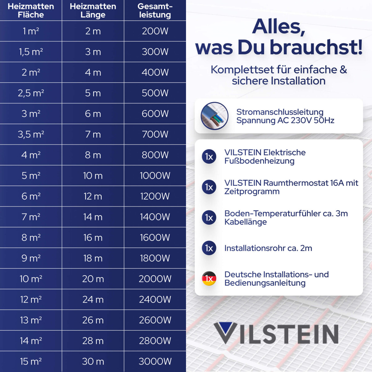 VILSTEIN© Elektrische Fußbodenheizung | 200W/m² TWIN Technologie Elektro | Komplett-Set